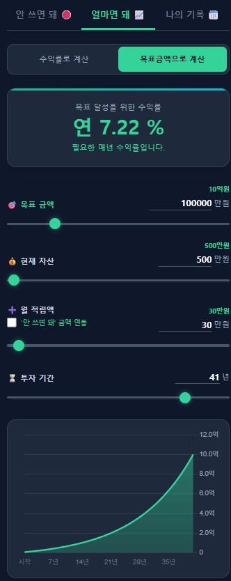 제가 직접 만든 [안 쓰면 돼 & 얼마면 돼] 계산기에서 여러분의 절약액과 예상 수익률을 넣어보세요. 복리의 마법이 여러분의 자산을 어떻게 바꾸는지 1초 만에 확인하실 수 있습니다.